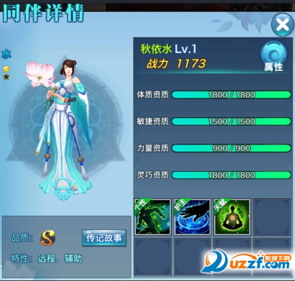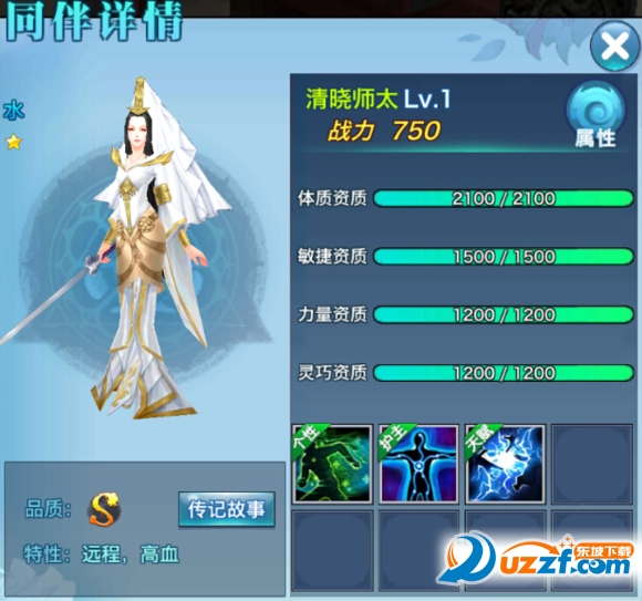 资质评估:力量上佳,灵巧也很高,就是体质和敏捷都比较遗憾,不过远程输出站后排也不算太大缺点