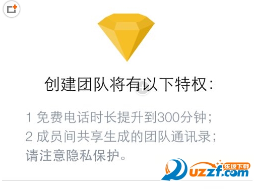 随后会提示我们创建团队以后,将会获得的一些特权,如图所示