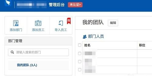 当注册企业成功以后,就可以在管理后台对团队进行操作了,如添加部门,添加员工等。