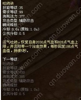 3、侠客一个让人羡慕、嫉妒、恨的神技-吐纳诀,一度让侠客自豪,让其他职业羡慕的技能,可是它也得成为绣花枕头了,初期侠客一万多的血,一个吐纳诀加两千多血量,还有每秒的治愈效果,那是多麽的NB,一度被其他职业要求和谐的借口。可是现在大家在看看,侠客基本3万以上血量,甚至更加多,还是每次只加两千多的血量,远远已经不够了,而且后期输出都高了每次伤害掉血量都是5000以上,一个暴击上万,还有灵兽的攻击。加个两千血,还有用吗?医生的是按比例加血,这个侠客是不是可以借鉴下?