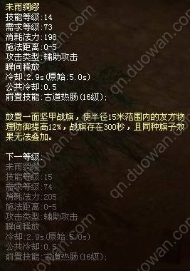 让侠客以技能强大而著称的职业,有了更加引以为傲的理由,可以免费给队友加上千的防御;可是一打架大家都会发现,旗帜永远是倒了的,一放出来就不见了,这怎么让侠客有脸见人?能把旗帜的范围加大,侠客可以把旗帜插远点,这个来的实际点。