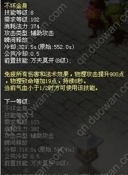 技能是好技能,可是一定要比别人等级高才可以解,而且是个点不满的技能,还死贵,花了钱点了后发现还是解不了被人的状态。一度让我伤心!