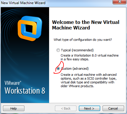 注意:另一硬盘中系统目前只能是win7、win8,xp系统会存在驱动问题无法解决的问题,只需使用管理员权限打开vmware ,新建虚拟机,选择自定义。