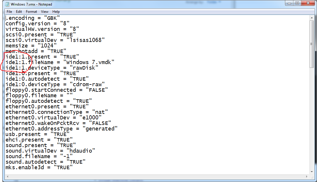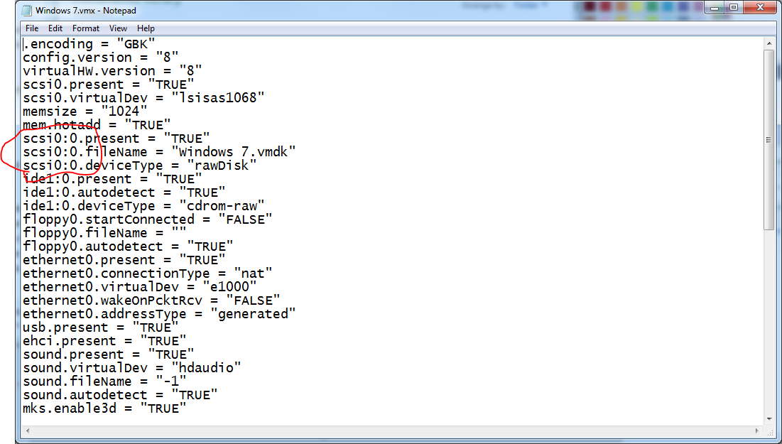 打开新建虚拟机的目录,使用记事本打开vmx文件