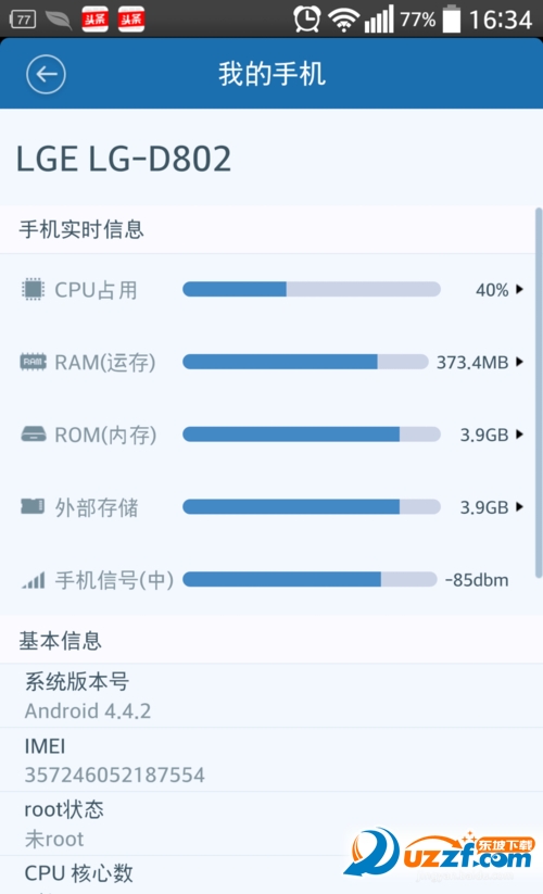 在第一页显示的是手机实时信息。CPU、内存等占用率等基本信息。注意这是实时的。