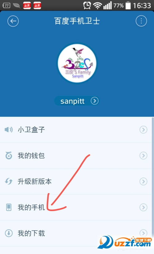 打开百度手机卫士,在主界面,点击右上角的头像图标。