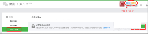 2、要使用自定义菜单功能,需要对公众号(订阅号)进行认证。通过左侧菜单的【微信认证】进行订阅号到认证订阅号的升级,这个具体操作就不说了。