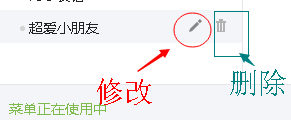 如果添加的内容需要修改或删除,选中菜单后,后方会出现修改、删除的按钮