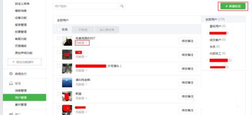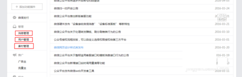 5、在后台做好微信公众号的素材管理和用户管理,素材的管理需要进行分门别类,这样别于查找。用户管理也是如此,可通过标签是归类,这样可以在推送的消息的时候,便于选择。