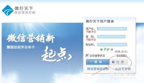 5、登录微行天下的公众平台助手,没帐号的点击注册一个账号。