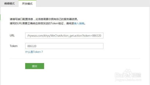 8、点击系统设置,里面有成为开发者的url和token,分部把他们复制到微信公众平台上然后点击提交。