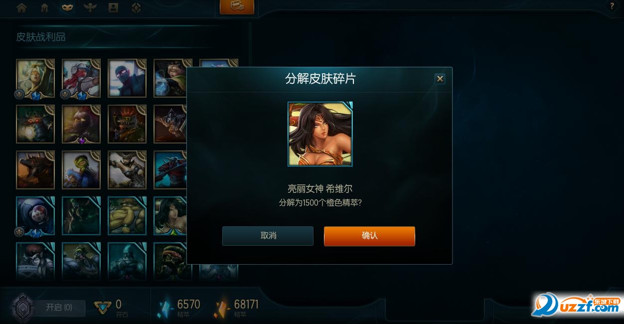 英雄可分解为蓝色精萃,皮肤与守卫皮肤可分解为橙色精萃。