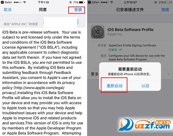 三、接下来弹出【安装】按钮,点击之后,要求我们重启手机,如图所示。