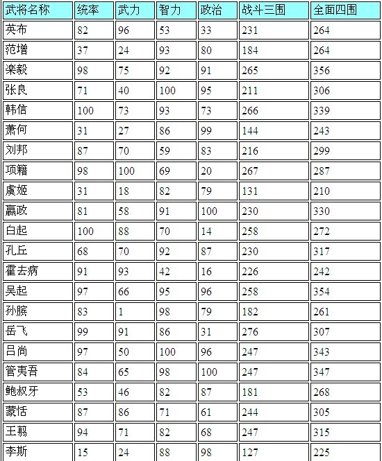 另外,隐藏武将都将以新武将的方式出现。现在就一起就来看下这22位武将的具体能力值。