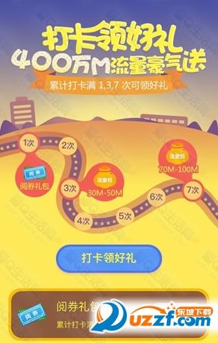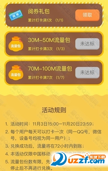 第三步:点击打卡领好礼,开启活动,达成目标后即可领流量