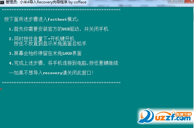 第一步:手机先要进入Fastboot界面,进入的方法:在手机关机状态下,按住音量键-和电源键,当屏幕中出现一只米兔正在修安卓机器人则已经进入FastBoot模式,如下图所示: