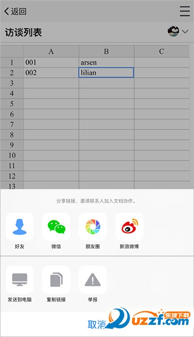 2.联系人打开协作文档的分享链接,即可浏览协作文档。在QQ或IM内打开协作文档,即可参与编辑。