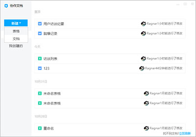 2.轻触右上角的加号,选择需要创建的协作文档类型;