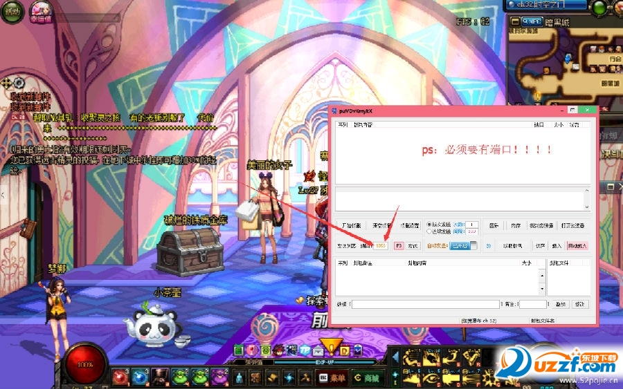 第三步:选择任意角色,现在看看工具‘端口’处有没有数字(没有数字请返回第一步)这个数字是随机的,每次都不一样,然后去一个想去的频道,点击‘获取封包’然后点击右下角地方‘快速查询可用包’然后就会出现N多数据,这里面必须包括四维,三速,CD,以及四种属性强化,如果缺少任意一个请换频道试试。