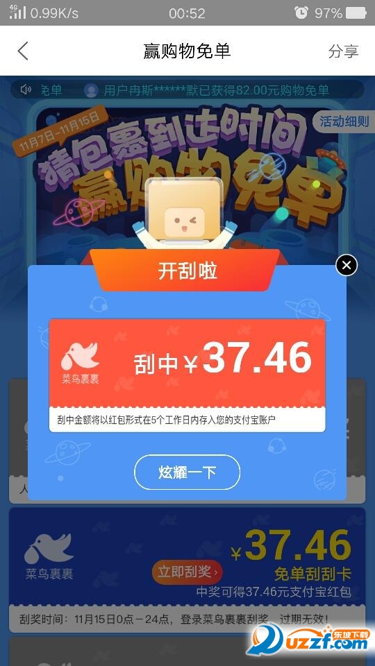 首页 → 最新资讯 → 互联网 → 菜鸟裹裹免单刮刮卡真的能中奖吗?