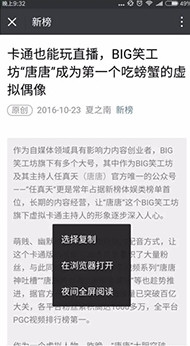 点击你正在看的文章会出现对话框,选择“夜间全屏阅读”,屏幕就会变成暗色。想退出夜间模式,直接点击返回键即可。