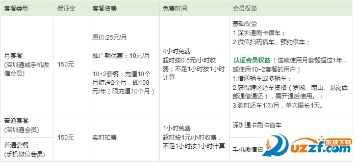 (2)连续使用包月套餐超过1年,或选择10+2套餐的用户,可成为认证会员。认证会员可同时租借2辆车(手机微信1辆、深圳通卡1辆);借第一辆车时,按4小时免费,超过4小时按0.5元/小时的标准收费。借第二辆车时,第二辆按1元/小时收费,不设免费时间。深圳通卡与手机微信不区分借车先后顺序。