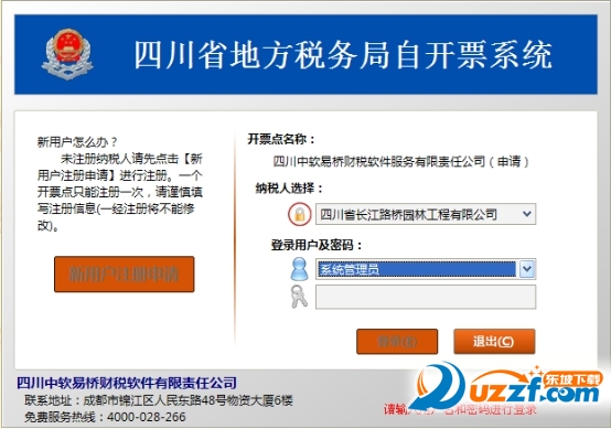 注册成功后点击【退出】系统再次重新登录开票系统如图: