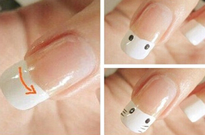 超可爱Hello Kitty美甲彩绘教程教大家画可爱的美甲,打造出超萌的可爱气质,下面就来学习吧。 {insd m="0" i="99568"} 超可爱Hello Kitty美甲彩绘教程步骤1:这款美甲适合偏长一点的方形指甲,美甲之前最好是修好指甲,再涂抹一层透明的