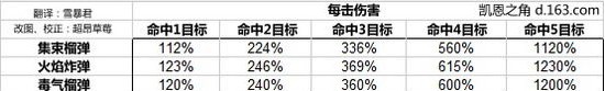 注:在我们的测试中,3枚手榴弹一次只能有1枚攻击到一个怪物,而不是3个。 如果可以证明每个手榴弹可以多次击中怪物的话,这技能就变得更加强大。
