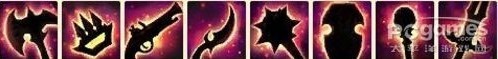 从左往右,依次是:斧、拳套、枪械、匕首、锤、盾、法杖、剑,这就意味着所有职业都可以拥有橙武啊有木有!