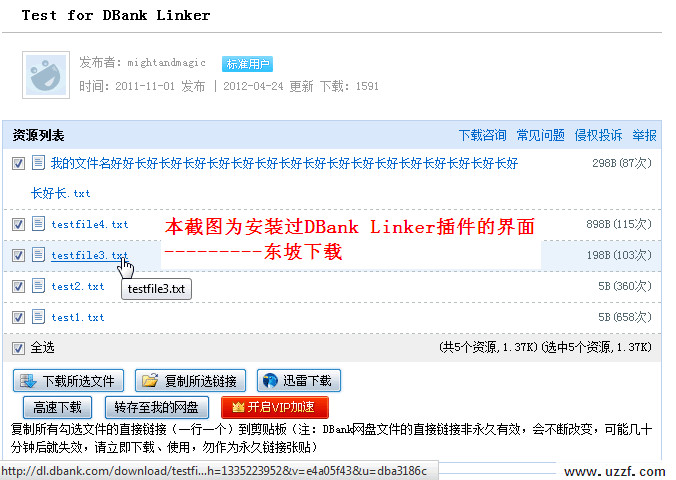 功能一:DBank网盘下载链接对于未登陆用户隐藏,需注册登录下载,该脚本能让用户无需登录即可下载,并直接显示下载链接。