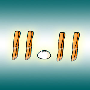 如图右,光棍节最佳推荐搭档是【四根油条+一个包子组合】:四根油条就是"11·11"的四个"1",包子就代表中间的那个点。这是光棍们的早点宣言,也成为光棍节的吉祥物。其中,油条可以替换为以下任意一种:1.四个火腿;2.四根油条;3.四个烤肉串;4.四个糖葫芦。包子可替换为鸡蛋、馒头等;总之,中国人就是讲究个神似(一定要用力吃,吃完才算数哦)!