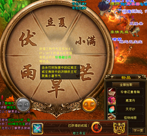 2、收集节气(倾城分别参加了幸运快活三、楼兰寻宝、一个都不能跑)