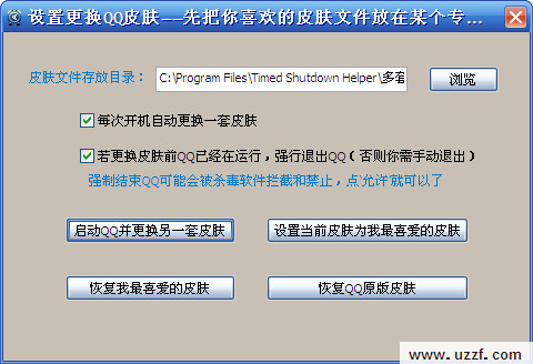 本软件的默认皮肤存放路径是“C:\Program Files\Timed Shutdown Helper\多套QQ皮肤”