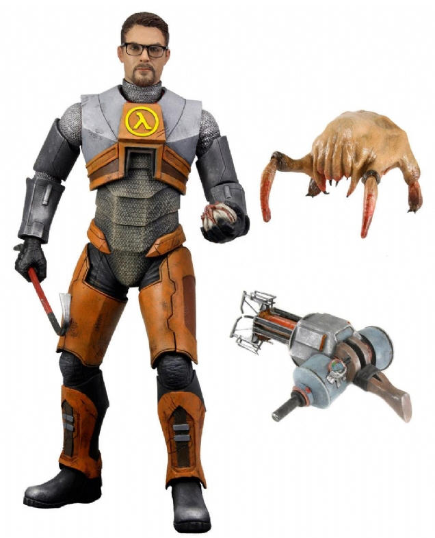 戈登·弗里曼是经典射击游戏《半条命1》中的男主角,该手办模型高约7寸,全身包含20多处关节。除此之外,本手办还包含两套可进行更换的手臂,撬棍,bugbomb和重力枪附件,此外还附赠一个headcrab的手办。总之,每一个《半条命》的粉丝希望看到的功能都会在本次手办中实现。