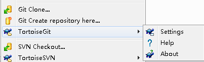 安装好TortoiseGit之后,重启电脑,鼠标右键里就会有这几个新的程序,git的相关功能都可以从这里访问到,连开始菜单都不要,是不是很方便?