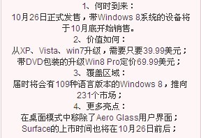 之前就有报道过win8即将发售,但具体的发售时间我们还不知晓。近日,微软Windows业务部门主管史蒂芬·辛诺夫斯基(Steven Sinofsky)周三在微软年度销售大会中向客户表示,微软将于10月26日正式开始发售下一代操作系统Windows 8。
