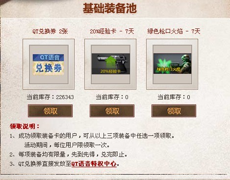 此次CF装备卡领取的活动时间:7月6日-8月4日。