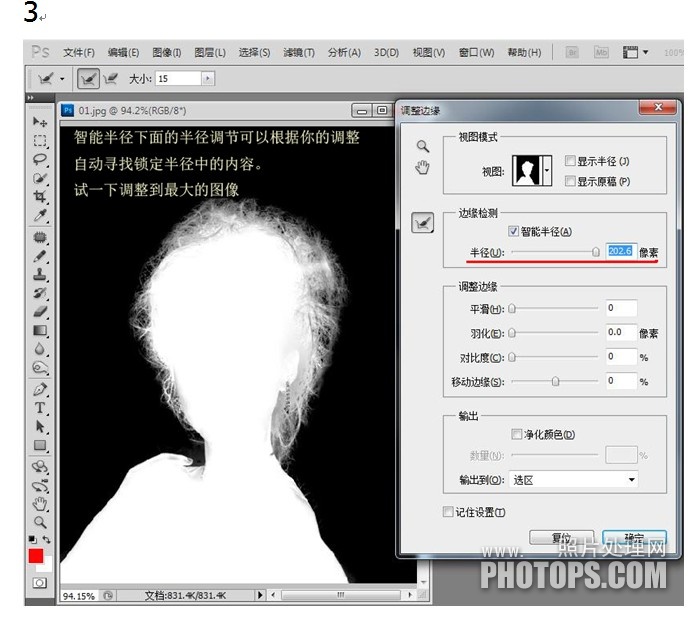 3.点击调整边缘