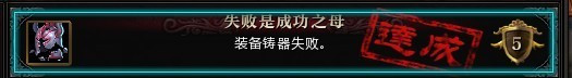 还有个失败掉级的“强化失败(概况失败)并掉落等级”,有时候运气不好会连续出现5次失败系统会给你一个隐藏的成就给你,这个时候你就要真的冷静下来了不要在强化装备了,或者说是换件装备可以继续强化也可以把强化的界面关掉在点开强化装备,这样就不会连续的出现失败的几率了。