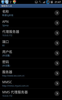 联通3G彩信设置:除了名称那一栏可以随意(当然你自己设置的名称自己要能看懂),其他请按上图设置。