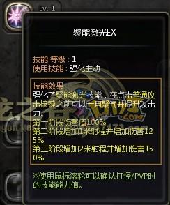 2、聚能激光EX主要是强化主动的,在蓄力过程中可用闪现取消,击中敌人后提高硬直效果,击中敌人后立即接左键可使敌人倒地,技能说明变更。