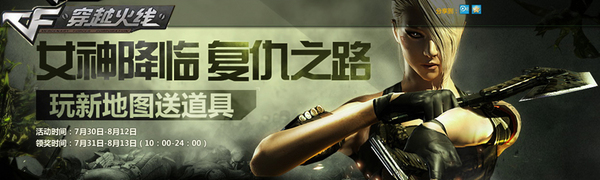 目前,CF的新版本“复仇女神”已经开启了,而万众瞩目的“复仇女神”也正式登场了,为了迎接这位冷眼的“复仇女神”,CF推出了“玩新地图送道具”的活动,奖励非常丰富的哦,大家可以尽享游戏的乐趣额。