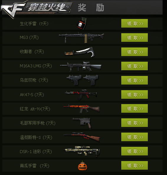 在活动期间,玩家只要登陆CF全新生化地图“生化酒店”、“死亡游乐场”,积累完成5场游戏,即可在次日登陆活动页面领取奖励。那么活动奖励是什么呢?