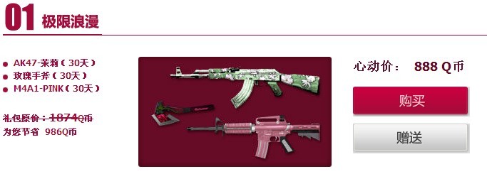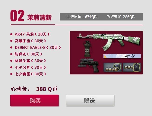 甜蜜而浪漫的中国情人节——七夕就要到来了,各大游戏也是纷纷推出七夕的相关活动,CF穿越火线官方特别推出浪漫七夕情人节道具包活动,情人节道具包里有女孩子们心爱的茉莉、玫瑰、粉红情人系列道具包哦。