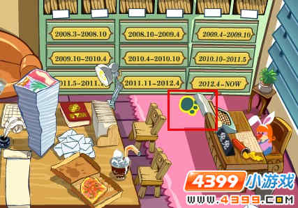 第二个小脚印就在爱心教堂的摩尔报社兔兔主编的桌子旁边。
