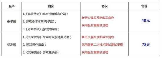 目前,《光荣使命》军用升级版宣布正式对外发售,而此次发售一共包含三种套装,分别是电子版、标准版以及典藏版。