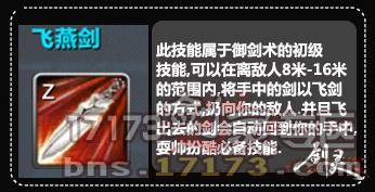 飞燕剑这个此技能属于御剑术的初级技能,可以在离敌人8米—16米的范围内,将手中的剑以飞剑的方式,扔向你的敌人,并且飞出去的剑会自动回到你的手中。