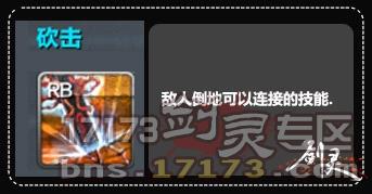砍击这个技能可以使连接敌人倒地。