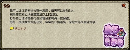 当然参与活动也是有个前提的,那就是大家的人物等级最少是20级,而且前去探险的宠物必须是宝宝金以上的品质。